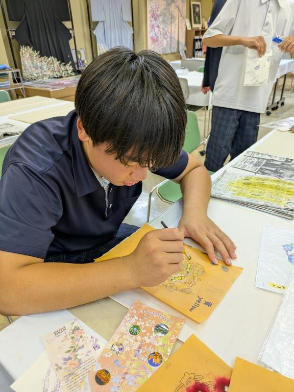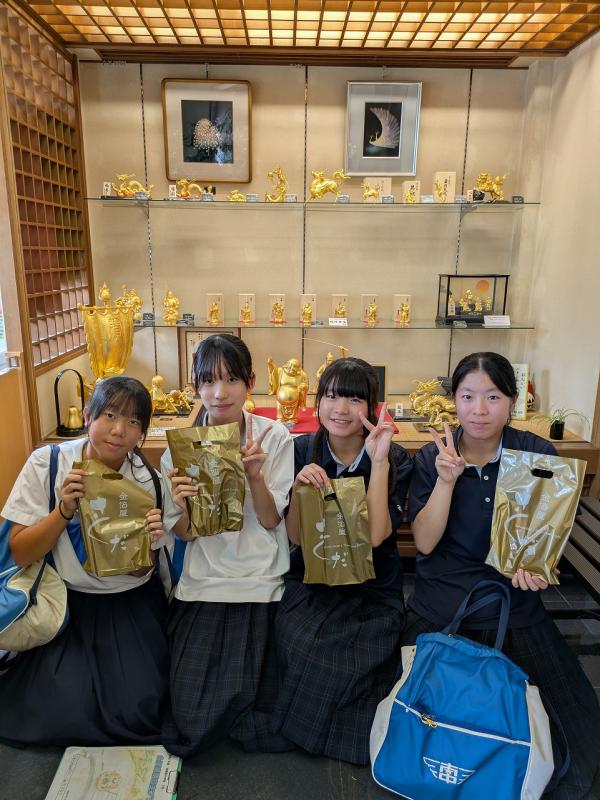 本日(10月10日)、2年生は金沢自主プランに行ってきました。もう昨日からワクワク感が顔に出ています。集合場所は金沢駅もてなしドームです。この時点ですでに最高です。学校に集まってからの御一行様ではありません。これがい~んです。なんならこのままぶっ放してもよいのですが・・・そういうわけにはいかないので一応集合です。今回は金沢の街中を散策しながら、金沢の伝統文化に触れるのが目的です。「金箔」「加賀友禅」「和菓子」「水引」「絵付け」などなど・・・金沢が世界に誇る伝統工芸です。みんな真剣な目つきで、そしてとっても楽しそうに作っていました。こんな経験なかなかできないですね。ましてや気の合った仲間と家や学校を離れての体験は一生の思い出です。