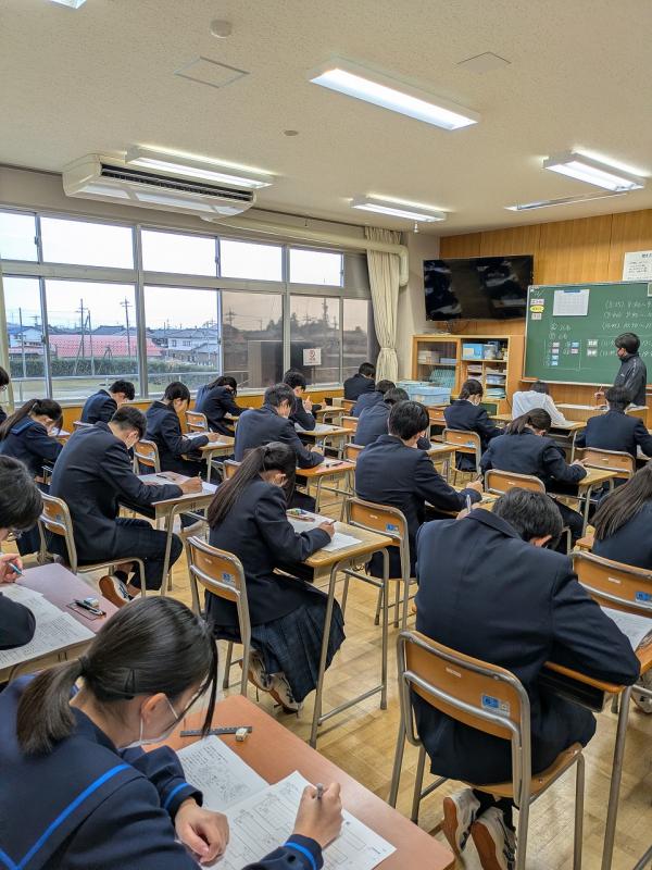 今日は3年生が第3回郡市統一テストに臨みました。よく「受験は団体戦」という言葉が使われます。クラスのみんなで受験に向かう雰囲気を作り出すことで、つらい受験勉強も乗り越えていけると思います。