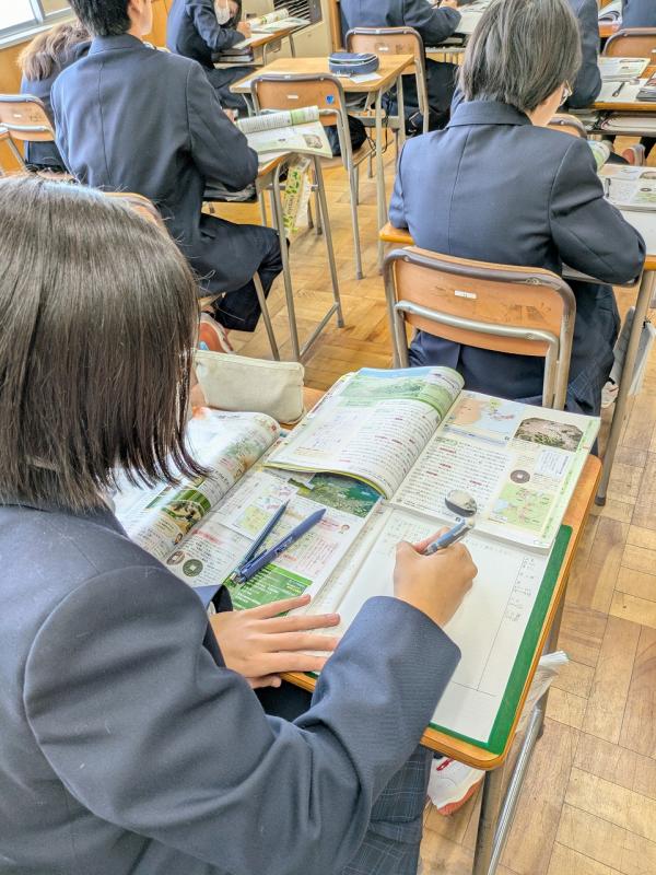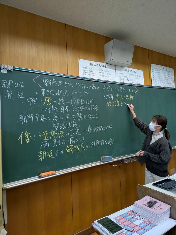 本日(12月4日)、1年2組は、社会の授業で「大化の改新」について学びました。