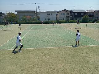 津幡南中学校テニスコートで、河北郡市中学校ソフトテニス春季大会(男子)が行われました。