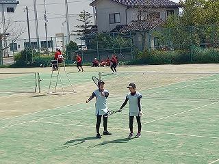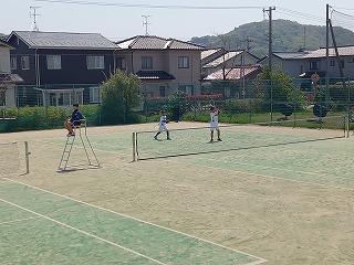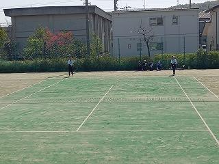 津幡南中学校テニスコートで、河北郡市中学校ソフトテニス春季大会(女子)の団体戦が行われました。