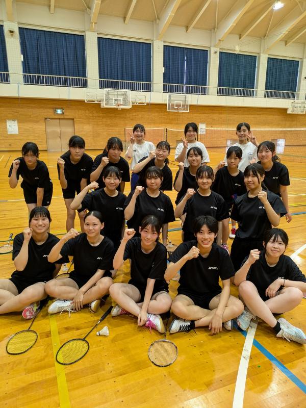 今日は女子バドミントン部に取材をしました。部員は全員で20名。キャプテンの水上汐音さんに聞いたところ、部のモットーは「向上心」、日々部員全員で成長できるように取り組んでいるそうです。目標は「県体出場!」