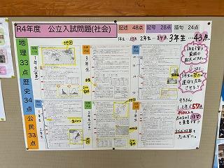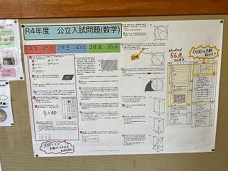 3年生の教室前廊下には、過去の入試問題と先生方からの解説が掲示されています。