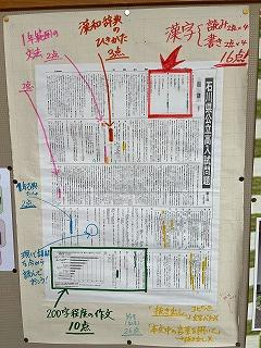 1、2年生のフロアにも趣向を凝らした掲示がなされていますので、1ヶ月後の保護者懇談の折りに、保護者のみなさまにもぜひご覧いただきたいと思います。