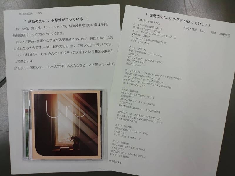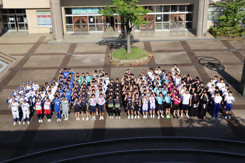 加賀地区大会がいよいよ始まります。加賀地区での津幡南中学校選手の健闘を祈り、津幡南中学校応援団を名乗る昨年度本校を去られた先生から、メッセージと応援歌が送られました。