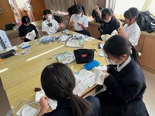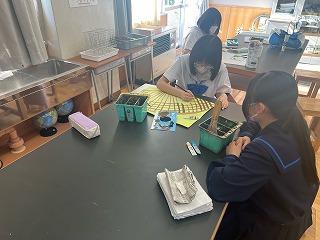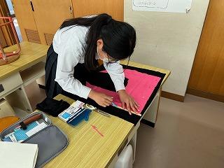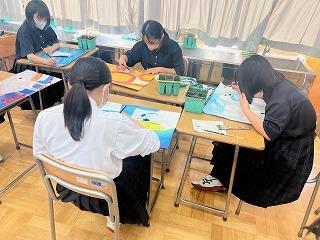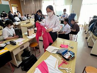 運動部に負けず、家庭部では、学校祭で展示する作品の制作をがんばっています。