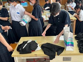 先日の加賀地区壮行会では、各部に手作りのお守りを作って手渡したのですが、現在は自分でデザインした衣服や手芸の作品を全員で取り組んでいます。