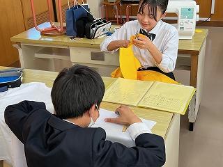 3年生は卒業制作になる衣服を製作していますが、いたるところに個性的な創意工夫が見られ、完成が楽しみです。