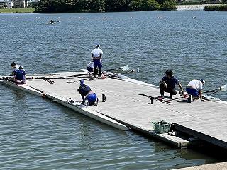いよいよ本日、佐鳴湖レガッタが行われます。早朝より宿舎の周りを散歩し、朝食をいただきました。漕艇場到着時は、天候は良いのですが、風が強めとなっています。そんな中でも精一杯漕ぎきってもらいたいと思います。