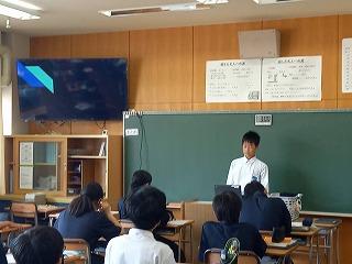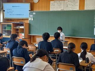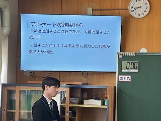 1年生では国語の時間にスピーチの授業を行っています。