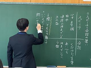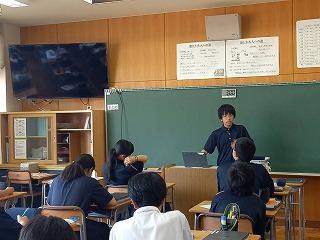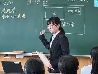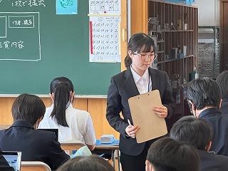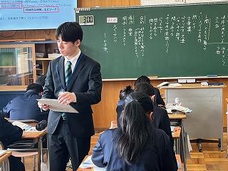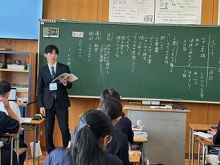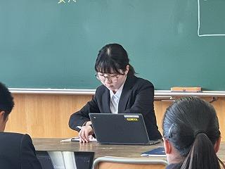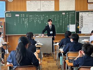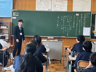 今週より、2年3組で本校卒業生の岩脇さんが教育実習に励んでいます。