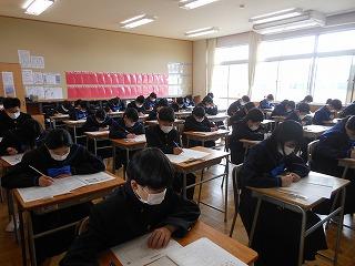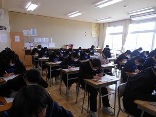 週が明けた今日は全学年でテストや学力調査を行っています。45~50分、じっくりと問題に向き合っています。