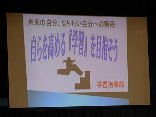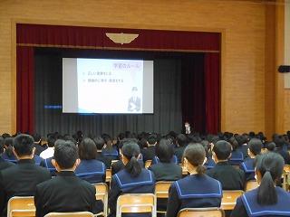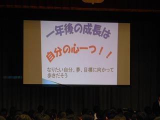 学年集会では、先生方の自己紹介に続き、学年主任の先生方から、進級した生徒の皆さんに熱いメッセージが贈られました。