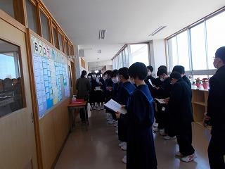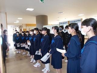 今日はテスト後に、明日の生徒会役員・学級役員任命式のリハーサルと各クラス副会長に対する指導を行いました。さすが、リーダーだけあって、堂々とした態度で臨んでいました。明日は本番、永井校長先生や全校生徒の前で今日同様、立派な態度で臨んでください。