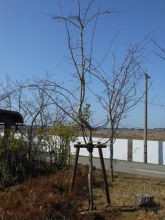 新入生の入学を祝って、地域の前谷内造園様より、桜の木をいただきました。昨日の午後、学校正面右手に植えていただきました。