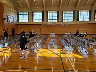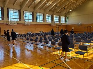 今日の午後、活動を終えた後、女子バスケットボール部の皆さんが明日の新入生オリエンテーション(入学式練習)の会場準備をしてくれました。ありがとうございました。