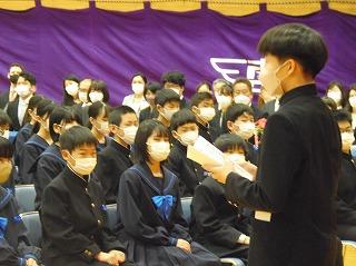 また、学級発表後には部長会議が開かれ、担当の村上先生から、今年度の部活動について熱いお話がありました。