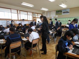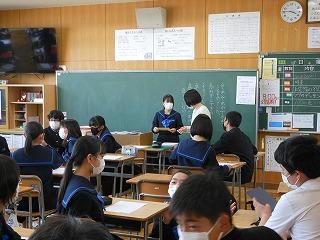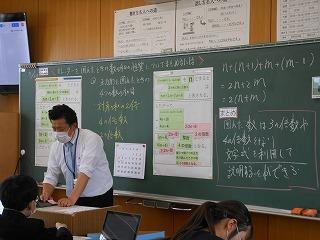 昨日6限目に2年4組の岡本先生の数学科の研究授業を、放課後に先生方の研修会を行いました。石川県教育委員会金沢教育事務所の杉本久子先生をお招きし、今年度のカリキュラム・マネジメント(教育活動)の柱である「主体的に学び、表現できる生徒を育てる教育活動の推進」をテーマに、授業づくりを考えました。研修会では先生方が6つのグループに分かれて協議をした後、表現力の育成について講話をいただきました。