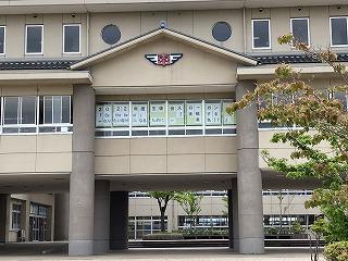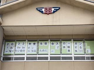 ▽校舎正面にも生徒会スローガンが掲示されました。なりたい自分になるために、1日1日を大切にしていきましょう。