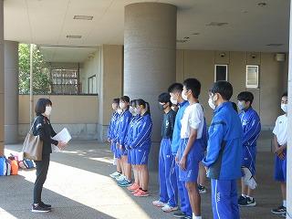 2022年5月25日 07時30分今日は河北郡市中学校陸上競技大会がかほく市のうのけ陸上競技場で開催されます。朝から大変暑いのですが、自己ベストを更新させようとの決意に満ちた表情で出発しました。