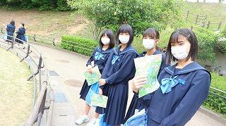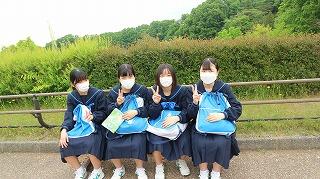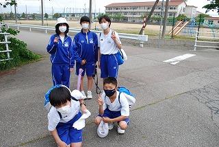 帰りはグループごとに学校に向かいました。チェックポイントでハイ、パチリ!水分補給もして学校へ。