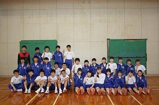 体育館で学級ごとの集合写真。