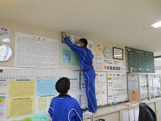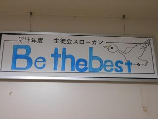 2022年5月16日 07時25分令和4年度の生徒会スローガンは「Be the best」に決定しました。前期生徒総会の全校生徒投票により、3つの中から選ばれました。校内各所のスローガンも3年度から4年度版に変わり、今後さまざまな取組を通して達成に近づけていきます。職員室のスローガンも柳谷内生徒会長と林副会長が掲示してくれました。