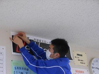 令和4年度の生徒会スローガンは「Be the best」に決定しました。前期生徒総会の全校生徒投票により、3つの中から選ばれました。校内各所のスローガンも3年度から4年度版に変わり、今後さまざまな取組を通して達成に近づけていきます。職員室のスローガンも柳谷内生徒会長と林副会長が掲示してくれました。