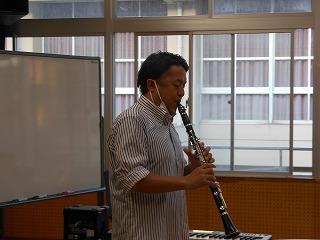 吹奏楽部は昨日クラリネットのレッスンを受けました。レッスンの最後に部員全員が集まり、粟生田さんの演奏を2曲聴きました。