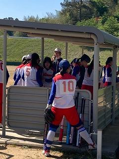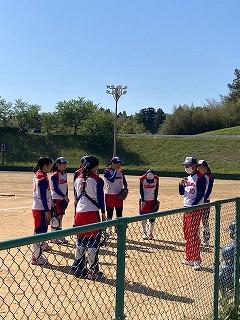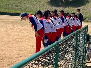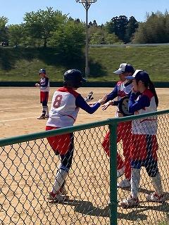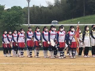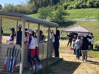 今日はかほく市の金津ソフトボール場で、第19回河北郡市中学校春季ソフトボール大会が開催されています。郡市内3リームのリーグ戦で行われ、本校ソフトボール部が第1試合で内灘中と対戦しました。この後1時から高松中と対戦します。