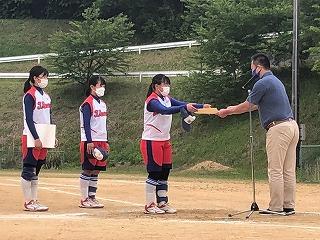第2試合の高松戦は投手戦となりましたが、見事サヨナラ勝ちで優勝しました。郡市新人大会では2敗でしたが、冬場の練習の成果を今大会で発揮できましたね。おめでとうございます。