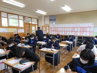 今日の朝の時間は第1回目の漢字テストです。4月は英単語テストのみでしたが、今月からは漢字テストと英単語テストを月に1回ずつ行います。第1回とあって、連続満点に挑戦しようという気合いをみせている生徒もいました。