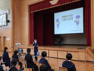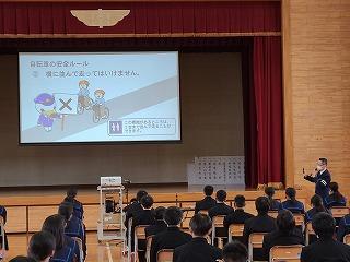 昨日3・4限に、本校体育館で1年生を対象に「自転車交通安全教室」を行いました。例年1学期は本校生徒の自転車の乗り方について、地域の方からも心配の声をお寄せいただくことが多く、津幡警察署の横山さんから直接お話を聞くことで、再度交通ルールを確認することができました。
