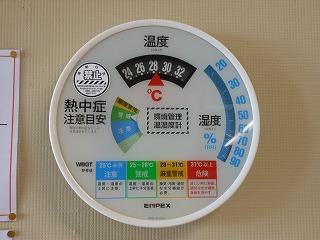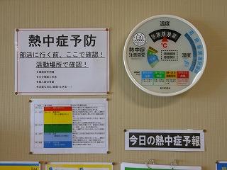 今週からぐっと気温が上がり、来週も高温の予報です。先生方の研修についてお知らせしましたが、校地内にも5ヶ所(保健室前1ヶ所、体育館1・2F2ヶ所、グランド2ヶ所)に環境管理温湿度計を設置しています。生徒たちも状況が「安全」なのか「警戒」なのかを見ながら、適切に水分補給をし、自己の体調を管理する夏になります。