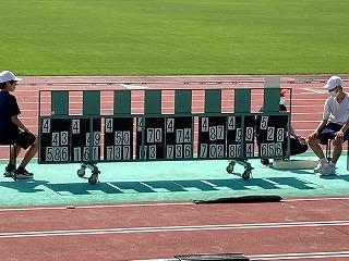 金沢市西部緑地公園の県陸上競技場で開催された陸上競技大会。河北郡市代表として本校陸上部員も出場しました。