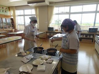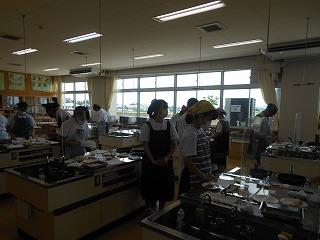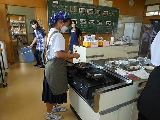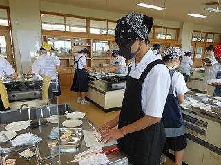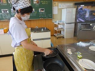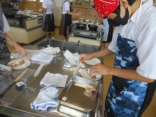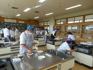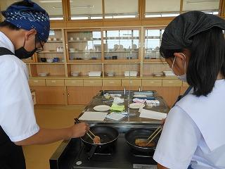 3年生の家庭科では1学期のまとめに調理実習に取り組んでいます。今日は1組が鮭のムニエルを作りました。久しぶりの実習に生徒たちも嬉しそうです。