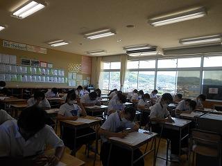 今日も暑い1日でしたが、1学期期末テストを行いました。部活動禁止中の家庭学習の成果は発揮できたでしょうか。放課後から部活動再開。熱中症対策をしながら、練習に取り組み始めました。