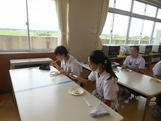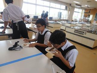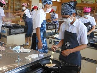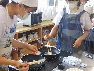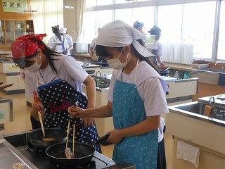 3年生の家庭科の調理実習も今週で終わりです。3年4組でも西谷先生のお話を聞き、調理映像を参考に調理に臨みました。
