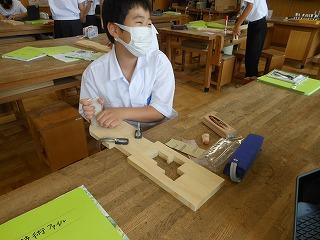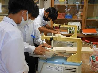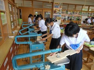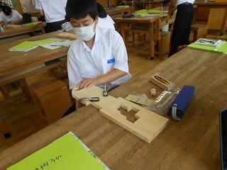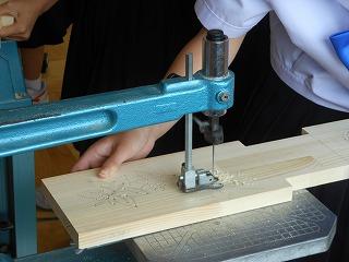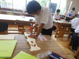 1年生の技術も10月最初の完成に向けて、制作に取り組んでいます。線に沿って糸鋸で切った後に、紙やすりで滑らかに仕上げています。2学期には組み立てに入ります。素敵な作品にしたいですね。