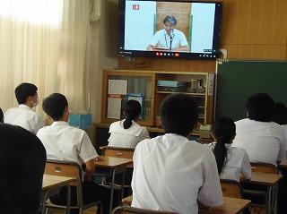 今日で70日間の1学期も終了。大掃除の後にリモート集会を行いました。通信陸上や県大会の表彰披露に続いて、終業式では永井校長先生の1学期を締めくくる訓示を聞きました。夏休みに向けての集会では、生活面と学習面での心がけを確認し、最後にALTのジョナサン先生の離任式。ジョナサン先生の離任の挨拶に続いて、柳谷内生徒会長が英語でお礼の言葉を堂々と述べました。