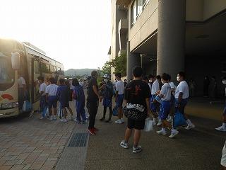 ボート部が宮城県登米市で行われる第42回全日本中学選手権競漕大会に向けて出発しました。午前5時30分過ぎから生徒が集まり始め、6時にバスは出発しました。今日は移動日、明日会場練習を行い、土日の大会に臨みます。