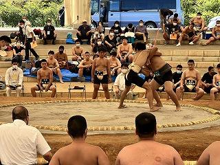 相撲部は北信越大会から一度津幡に戻り、2日間調整して、昨日会場入り、今日の大会を迎えました。この夏の思い出となる木曽町民相撲場でした。
