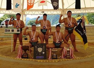 先日北信越大会で8年ぶり2回目の優勝を果たした相撲部は、同じく長野県木曽町で開催された第44回中部日本選抜中学生相撲大会に臨み、見事優勝しました。