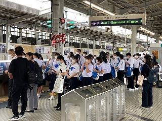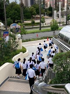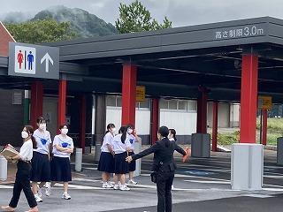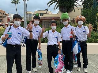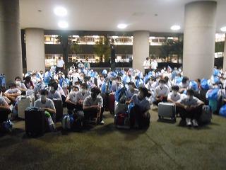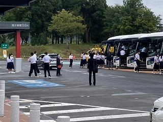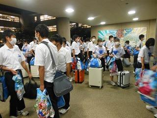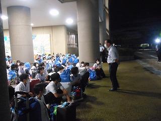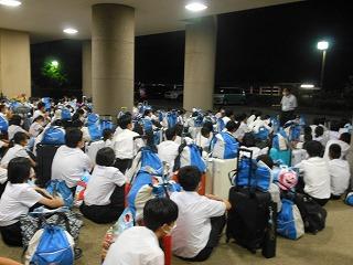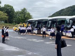 午後6時45分に6台のバスが学校に到着し、解散式を行いました。今日は各家庭で思い出話に花が咲きそうですね。