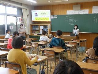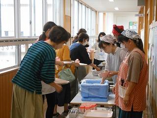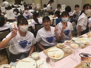3年ぶりの修学旅行の日、PTAでも3年ぶりに家庭教育部の給食試食会を行いました。15名の保護者の皆さんが参加され、まずは1・2年生の配膳の様子を見学、その後実際に試食いただきました。今日のメニューはご飯、豚肉のおいだれ、もやしの酢の物、かぼちゃのみそ汁。栄養士の濱本さんのお話にも熱心に耳を傾けてくださいました。