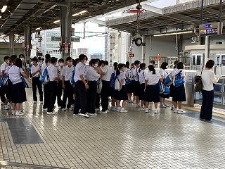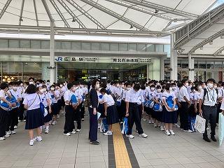 10時過ぎに新幹線が広島駅に到着。バスで広島市青少年センターに移動し、平和講話に臨みました。