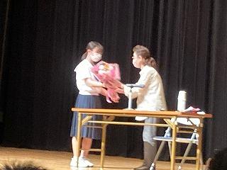 全校生徒の思いがつまった折り鶴モニュメントを届けました。