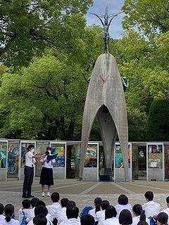 昼食後は平和公園で平和集会を行い、平和記念資料館を見学しました。