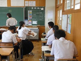 ▽2年英語「文意を読み取ろう」(英語の教育実習生が授業を参観しています)