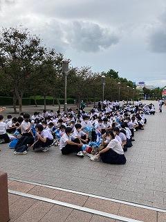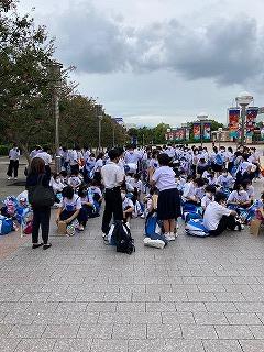 2022年9月9日 19時44分午後6時45分に6台のバスが学校に到着し、解散式を行いました。今日は各家庭で思い出話に花が咲きそうですね。